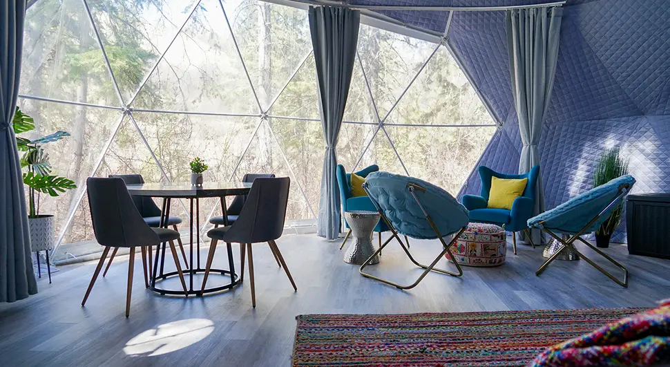 The ideal dome for people wanting to get away with their furry companions. This dome is equipped with a Queen size bed and will sleep 2 people.