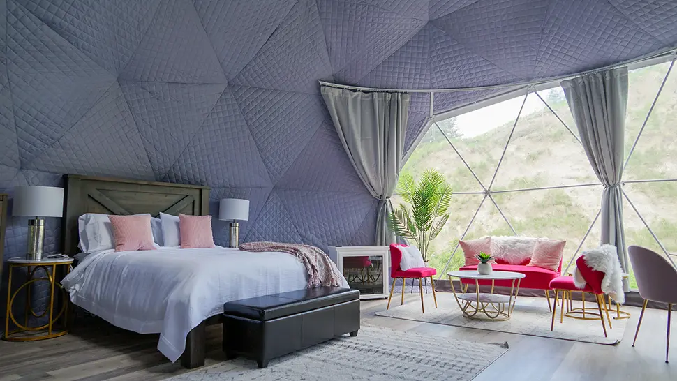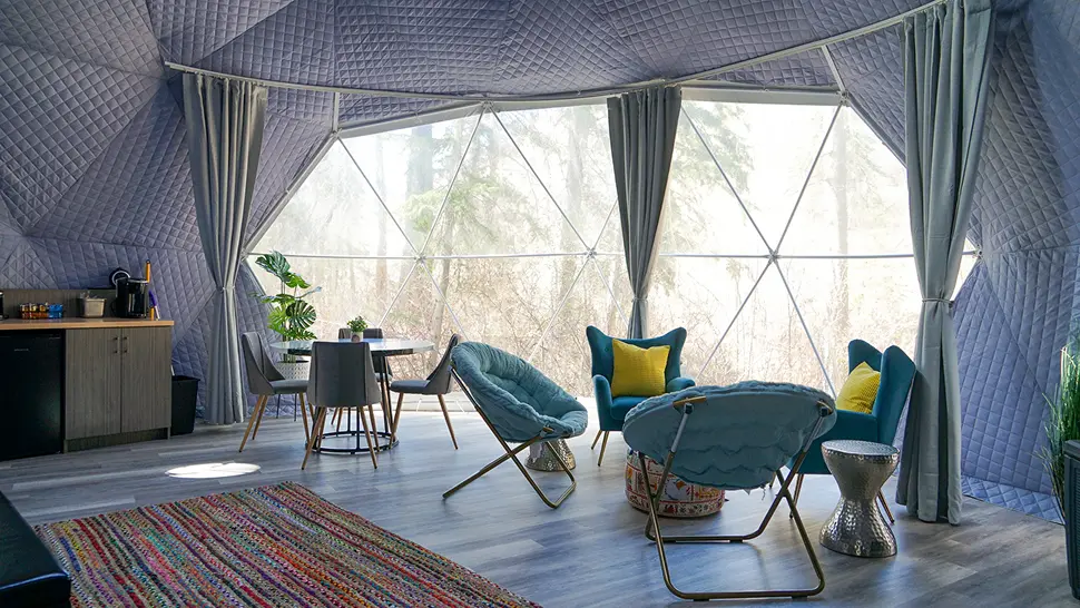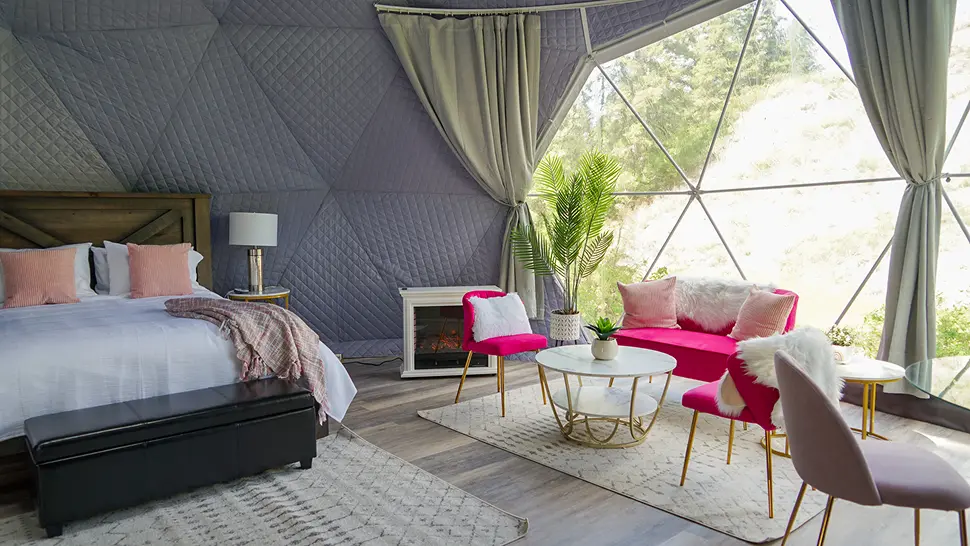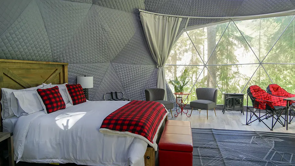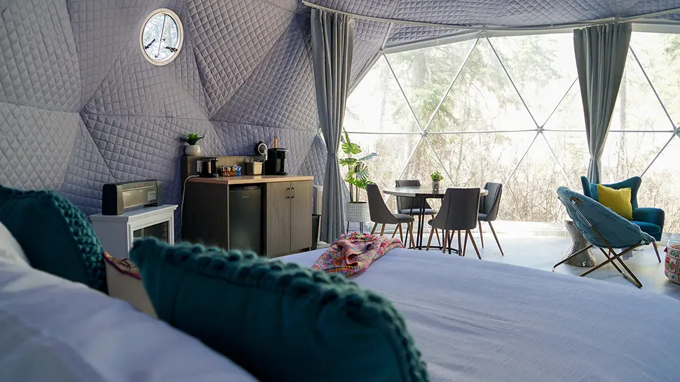 “We had an amazing stay in the domes! They were spacious, beautifully decorated, and the heated mattress made the bed super cozy at night. The dome came with thoughtful touches like coffee mugs, a mini fridge, and a fire pit outside with comfy camping chairs. It was so convenient not having to bring things like blankets and chairs! This campsite was the perfect get away for my partner and I. Although you are right in the city, it felt like we were camping deep within a forest.”